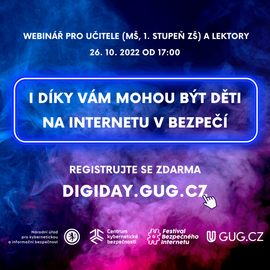 Chcete děti ve věku 5 až 10 let učit zásady internetové bezpečnosti a prevence, a hledáte cesty, jak na to? Registrujte se na bezplatný webinář ze série Festivalu bezpečného internetu, který vám tuto výzvu usnadní. https://digiday.gug.cz.